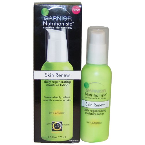-. Feature : 2.5 ounce Lotion / Nutritioniste Skin Renew Daily Regenerating Moisture Lotion was launched by the design house of Garnier / It is recommended for normal skin