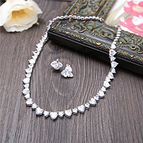 -. Binding : Jewelry -. Brand : Kanrome -. Department : womens -. EAN : 0602638009662 -. Feature : All stones are Cubic Zirconias. This jewelry shines with grace and beauty. And the metal surface is of high polished finish. / AAA Cubic Zirconia. Cubic zirconia are well paved to the metal, you never have to worry about missing it. / Nickel Free and Tarnish Free. Plating: 3 times for long time color retention / CZ color: Clear Necklace length: 50 cm Earring Length: 1 cm Total Weight: 50g Package Include: 1 x necklace, 2 x earrings (ear clip) / Occasions: Party/ Prom/ Wedding / Anniversary/ Engagement/ Shopping / Office / Gift -. Label : Kanrome -. Manufacturer : Kanrome -. Model : B30147 -. MPN : B30147 -. PartNumber : B30147 -. ProductGroup : Jewelry -. ProductTypeName : FASHIONOTHER -. Publisher : Kanrome -. Studio : Kanrome -. Title : Kanrome Platinum Tone Cubic Zirconia Heart-shaped Necklace Collar Stud Earrings Women Wedding Jewelry Set -. UPC : 602638009662