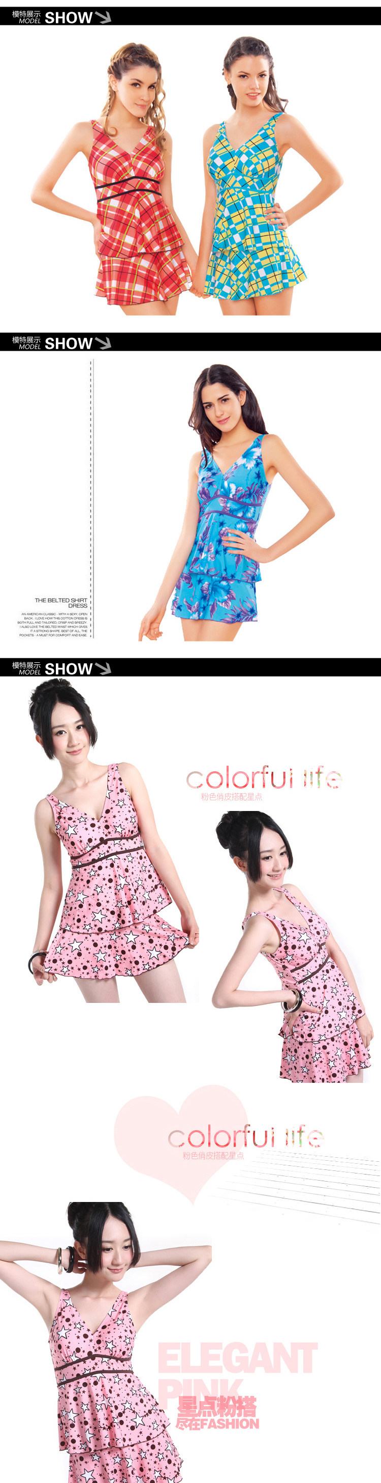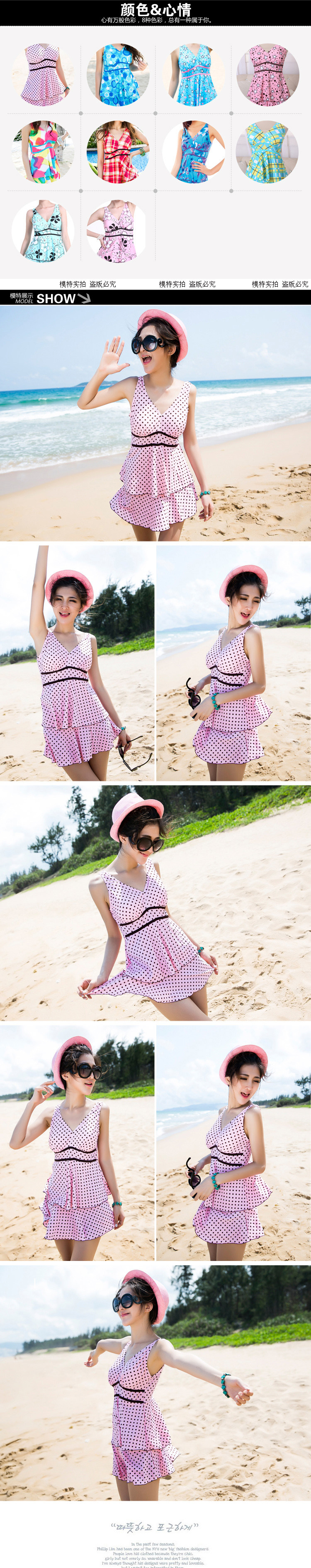 女式保守连体泳衣 显瘦遮肚裙式聚拢格子大码游泳衣