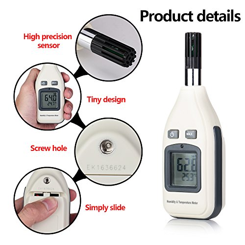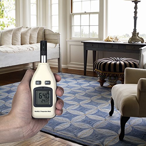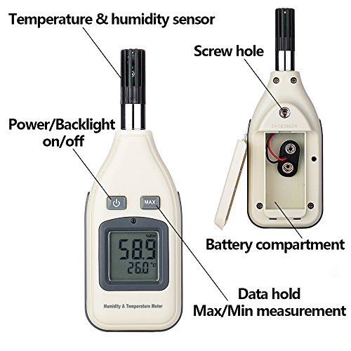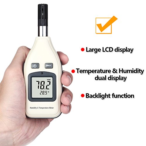 DIGITAL HUMIDITY AND TEMPERATURE METER, GOERTEK THERMOMETER HYGROMETER MONITOR FOR INDOOR AND OUTDOOR, MIN/MAX HOLD, HAND-HELD LCD BACKLIGHT WITH ONE 9V BATTERY INCLUDED