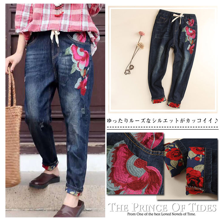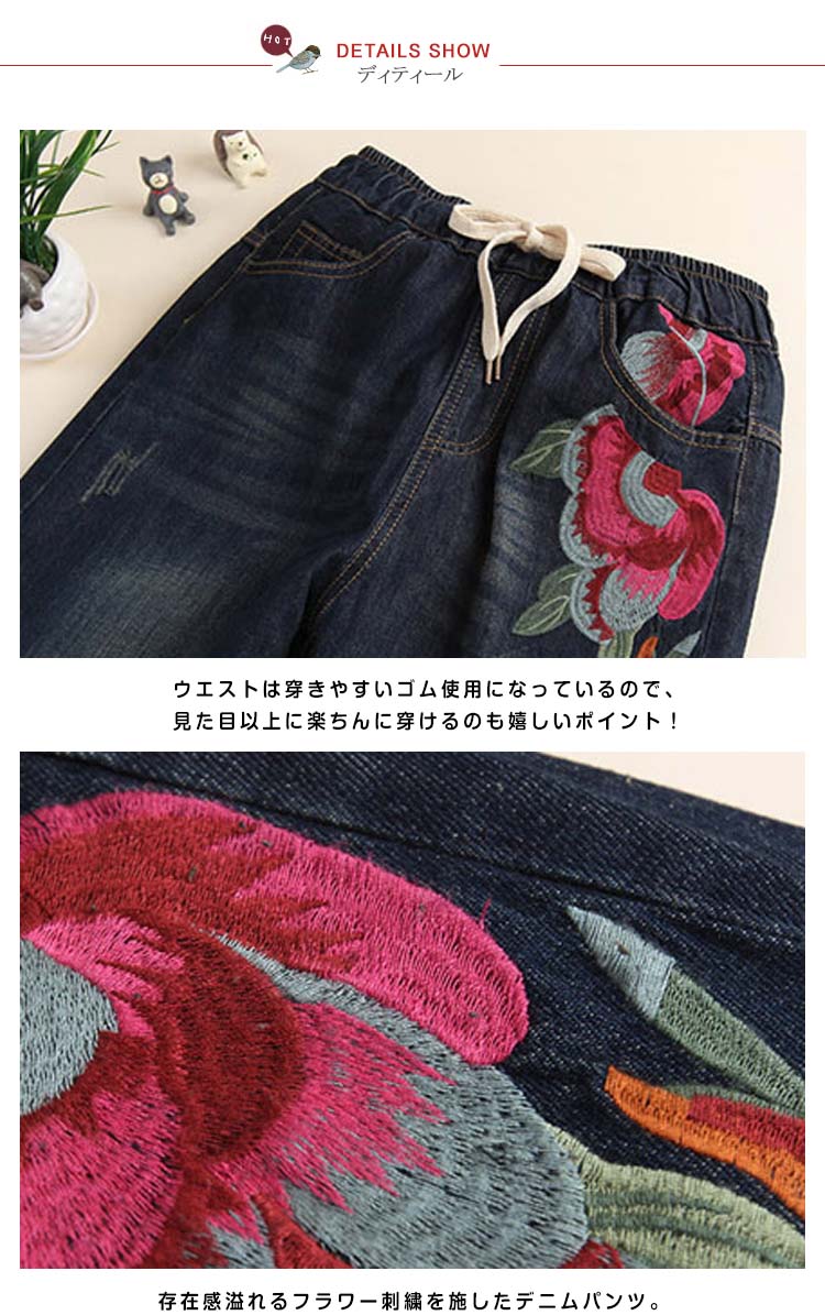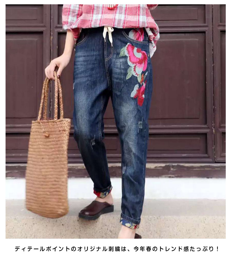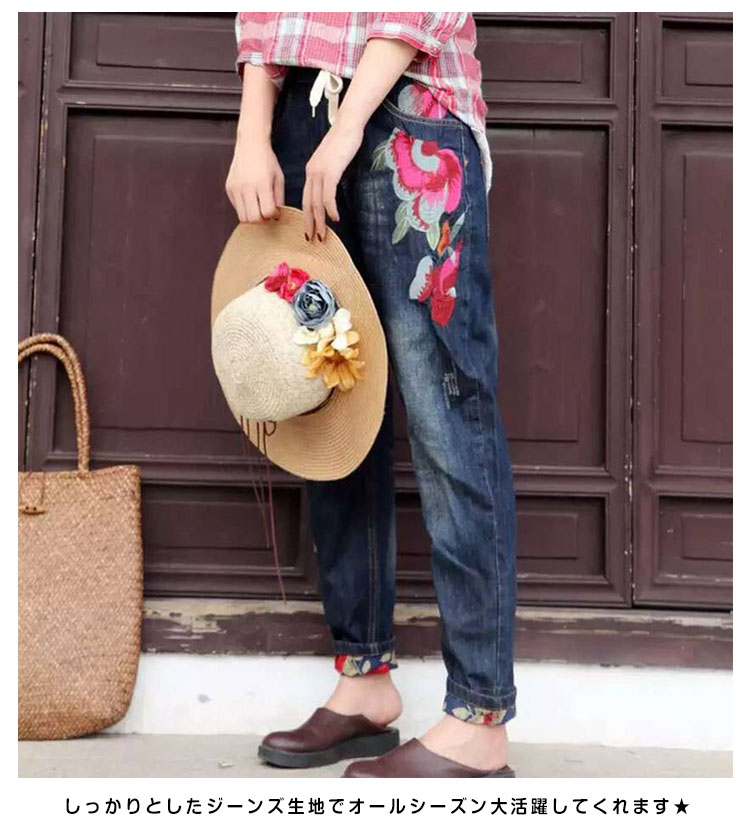 | ゆったりルーズなシルエットがカッコイイ♪サルエルパンツのシルエットが腰やお腹周りをオシャレにカバーしてくれます♪ディテールポイントのオリジナル刺繍は、今年春のトレンド感たっぷり! しっかりとしたジーンズ生地でオールシーズン大活躍してくれます★ | |