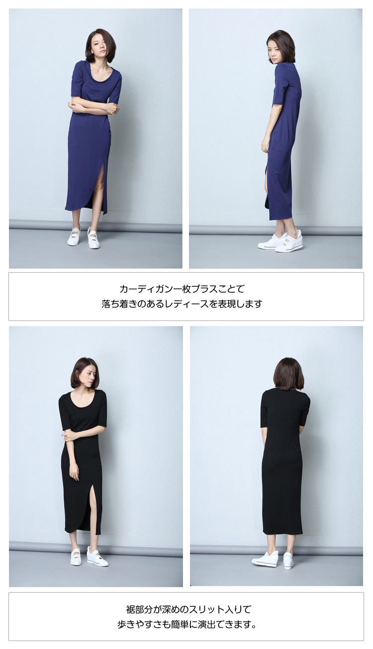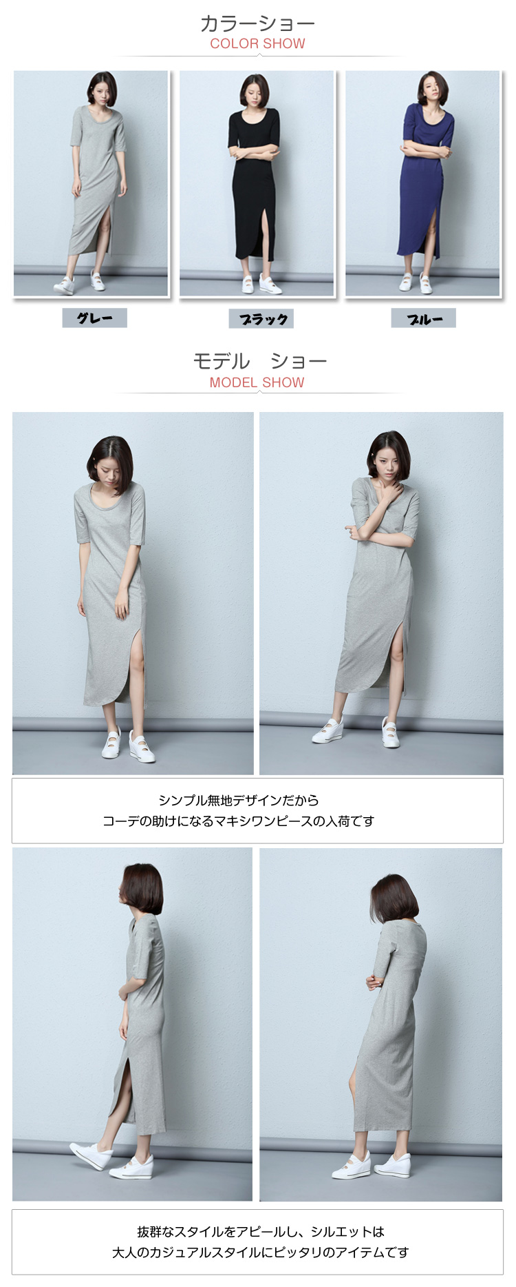 | シンプル無地デザインだからコーデの助けになるマキシワンピースの入荷です抜群なスタイルをアピールし、シルエットは大人のカジュアルスタイルにピッタリのアイテムですカーディガン一枚プラスことで落ち着きのあるレディースを表現します裾部分が深めのスリット入りで歩きやすさも簡単に演出できます。ストレッチの効いた一着なので、部屋着でも外でも大活躍できて大変便利です | |