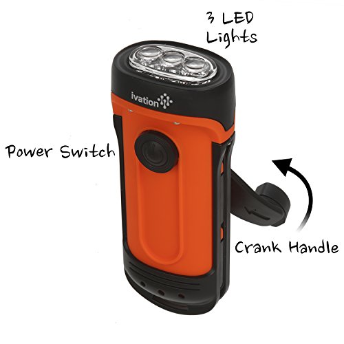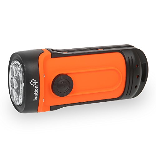 Ivation Waterproof Rechargeable Flashlight, Charges via Hand Cranking, 3 Lighting Modes