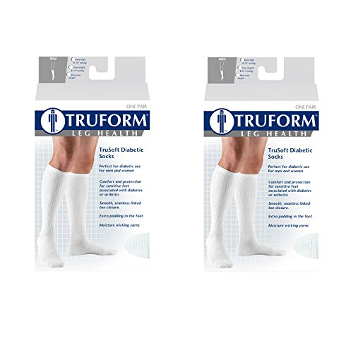 Graduated Compression Technology - Truform graduated compression support socks at a mild 8-15 mmHg compression help maintain positive circulation and leg health. Moisture management acrylic materials keep feet dry while stay-fresh treatment helps control odors. The cushion foot sole is a great feature for users with sensitive feet, or those prone to injuries. Ideal for diabetic patients.