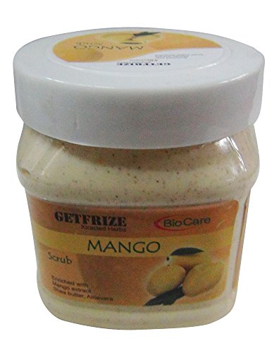 This exfoliating scrub contains mango extract, shea butter, aloe vera gel it leaves skin soft & smooth.