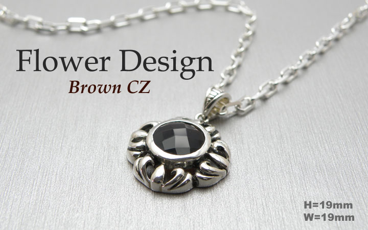 花をイメージしてデザインされたネックレスです。真ん中のダイヤカットが施されたブラウンジルコニアは存在感大です!!