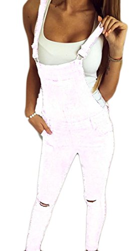 -. Title : maweisong Women's Casual Adjustable Bib Apron Denim Hole Skinny Pants L White