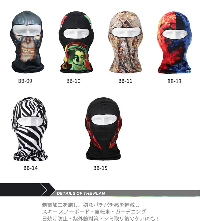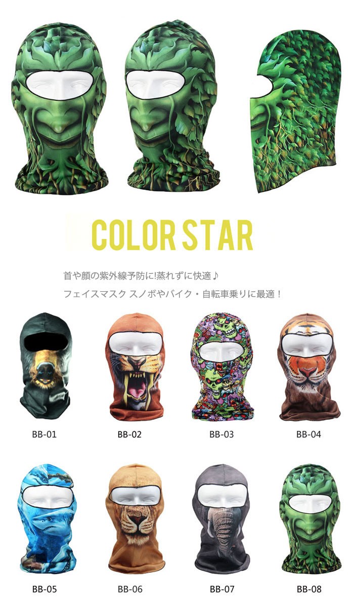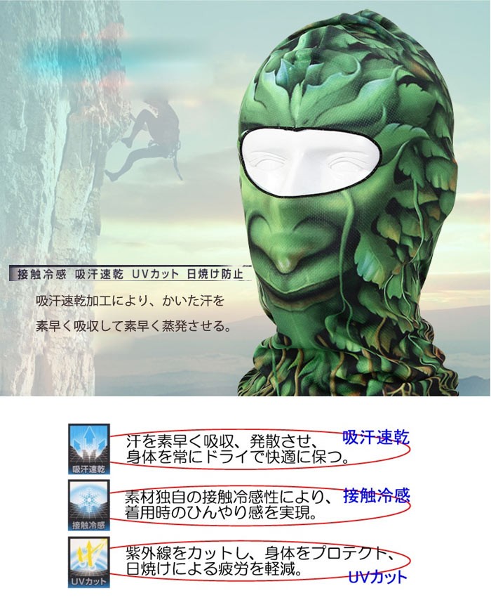 | 素材 | :ポリエステルフェイスマスク 花粉対策 UVカットマスク バラクラバ フェイスマスク 目だし帽 UVカットマスクバラクラバ フェイスマスク フェイスカバー UVカットマスク 目だし帽 春夏用バラクラバ 吸汗速乾 スキー スノーボード 自転車・ガーデニング |