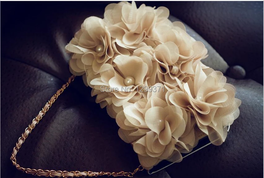 Features:3D Beige Rose Peony Cloth Flower Flip Wallet
