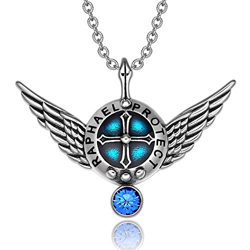 -. Title : Archangel Raphael Angel Wings Protection Shield Magic Powers Royal Blue Crystal Pendant 18 inch Necklace