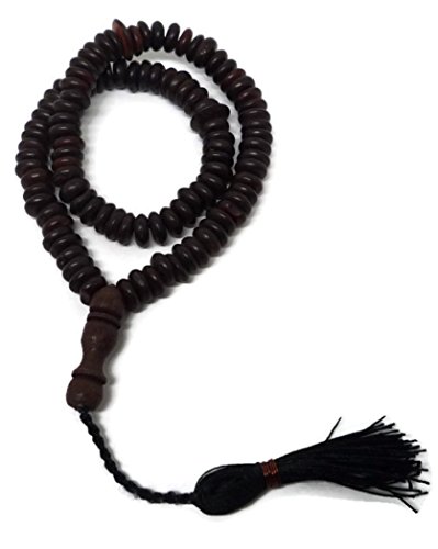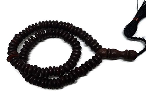 Muslim Tasbih Beads Amn015 Islamic Prayer Zikr Flat Design Beads with Decorated Tassels - Dark Brown