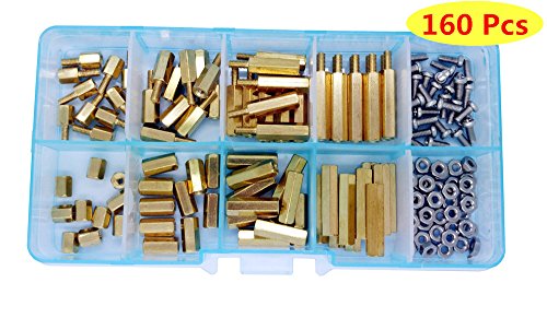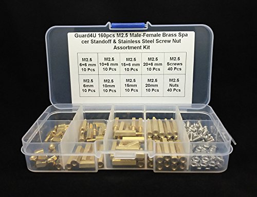 Guard4U 160pcs M2.5 Male-Female Brass Spacer Standoff & Stainless Steel Screw Nut Assortment Kit