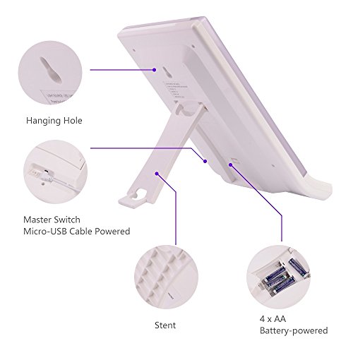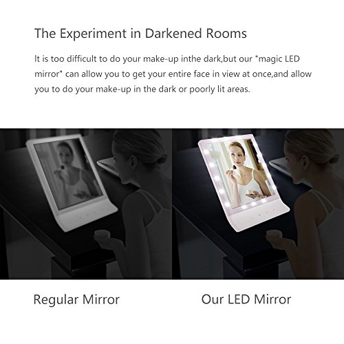 4. Wall Mount or Table Top Options: Tired of sitting to make up, you can hung up the LED vanity mirror with the hanging hole on the upper back. It has an adjustable stand and you can have the mirror at different angle according to your demand.The fold out stand folds into the mirror, so it is flat across the back of the mirror.