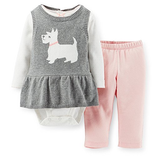 -. Title : Carter's Baby Girls' 3 Piece Knit Tunic and Legging Set Grey-Pink