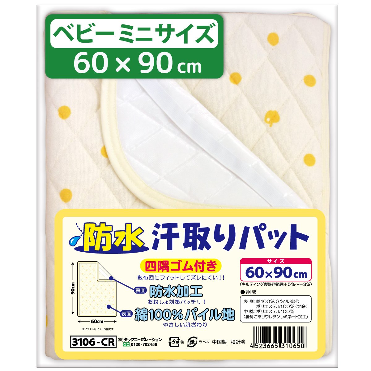 100% cotton terry print waterproof sweat quilt putt four corners with rubber mini size 60 × 90cm No.3106 (cream)