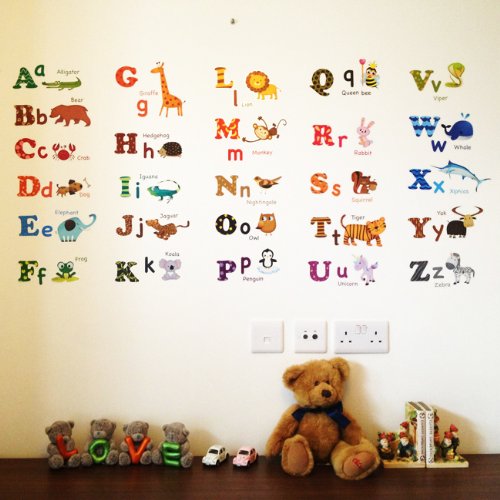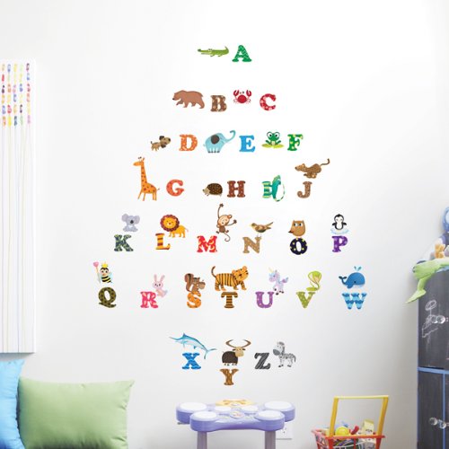-. Title : Decowall, DW-1308, Alphabet & Animals Wall Stickers/Wall decals/Wall tattoos/Wall transfers