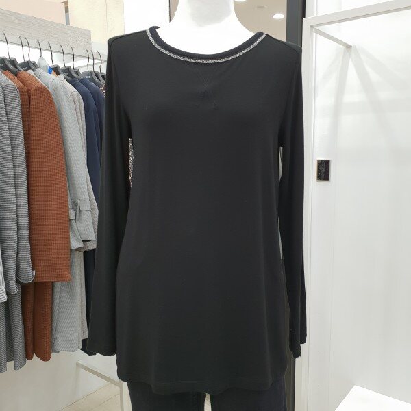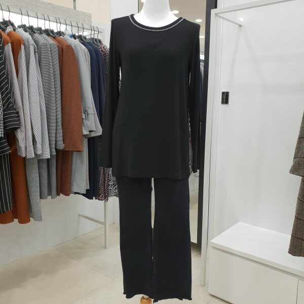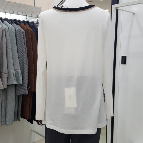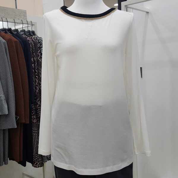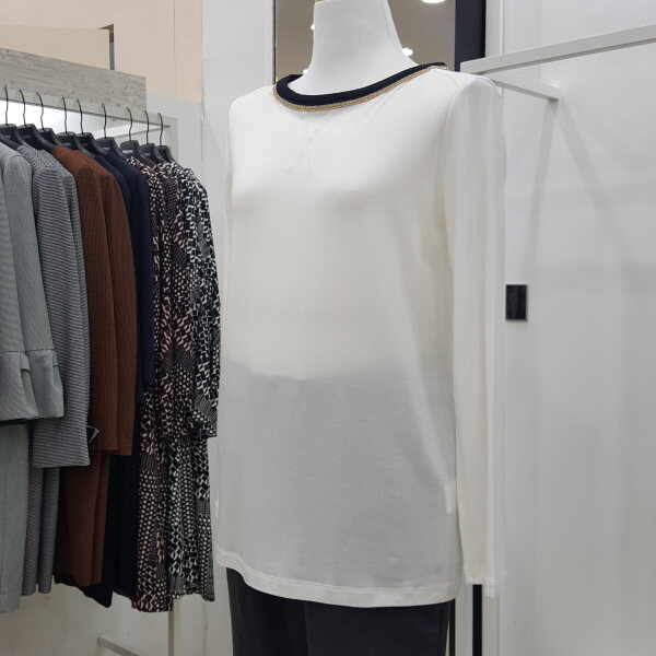 넥 라인에 메탈 배색을 넣어 화사하며 신축성이 좋은 소재로 베이직한 기본 핏 티셔츠입니다. 깔끔한 디자인으로 다양한 하의와 아우터로 연출이 가능하여 활용도 높은 티셔츠입니다.