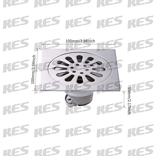 KES V230A Square Shower Floor Drain with Removable Strainer, Stainless Steel