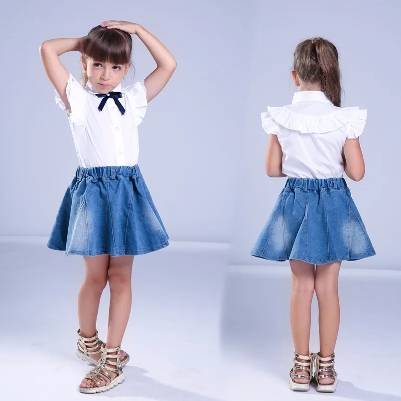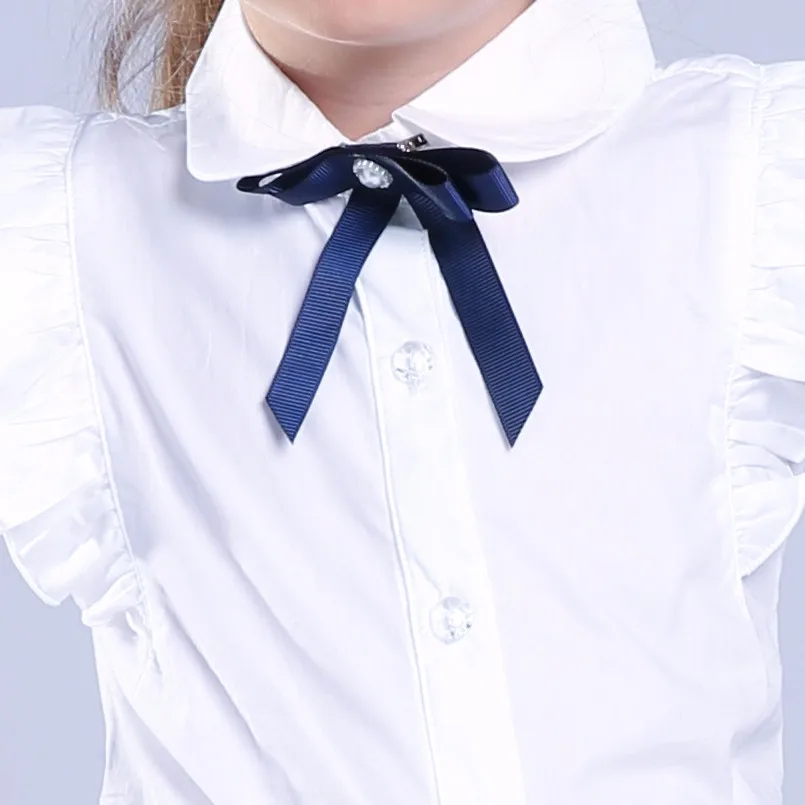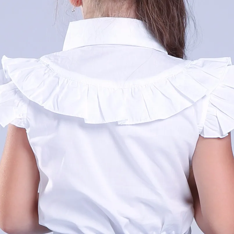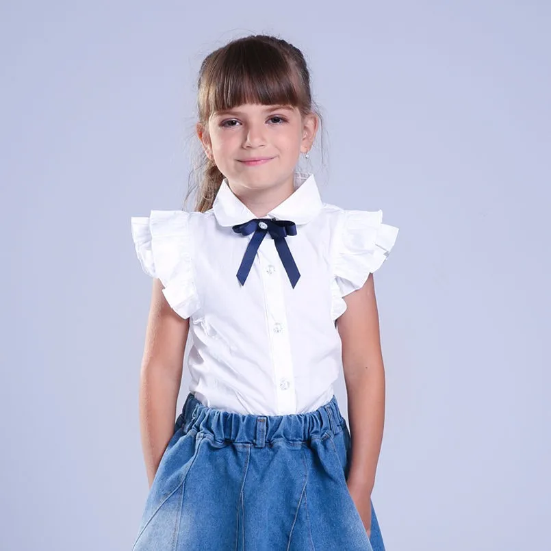 Summer Girl Shirt Short-sleeve Teenager Slim Waist Blouse for Girls Clothes Kids White Clothing Bow New Brand Spring Infant Tops