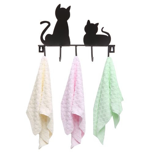 - Metal hook hanger with a design featuring 2 lounging cats.