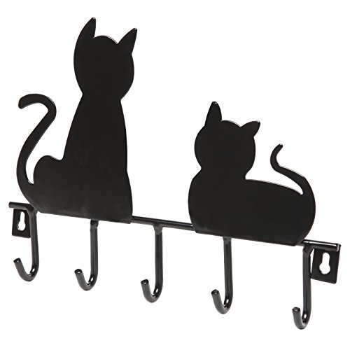 Black Cats Wall Mounted 5 Key Hooks Metal Hanger Rack