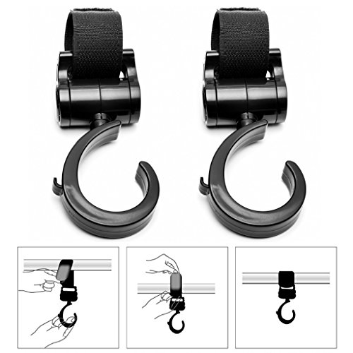 Zeltababy ABS Plastic Multi Purpose Baby Stroller Hooks with Hook and Loop Strap, Black, Set of 2