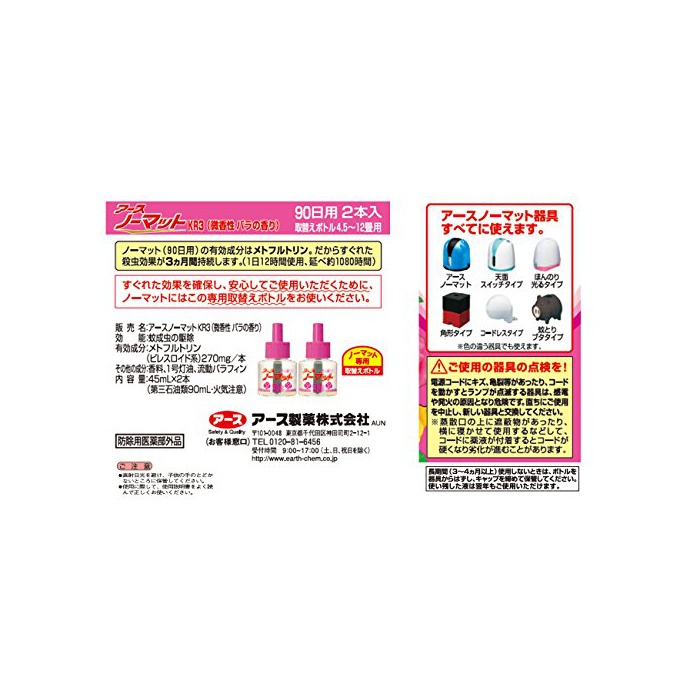 원본상품명: ア?ス製? ア?スノ?マット 90日用 取替ボトル バラの香り 2本入