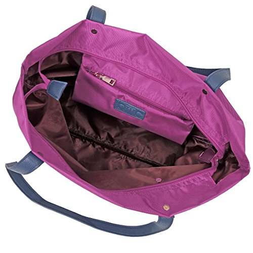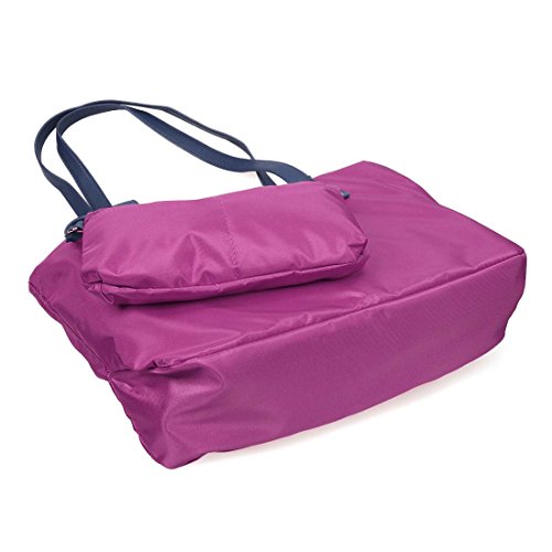 BMC Womens Fuchsia Pink Waterproof Nylon 2 in 1 Fashion Shopper Tote and Wristlet Clutch Handbag Set