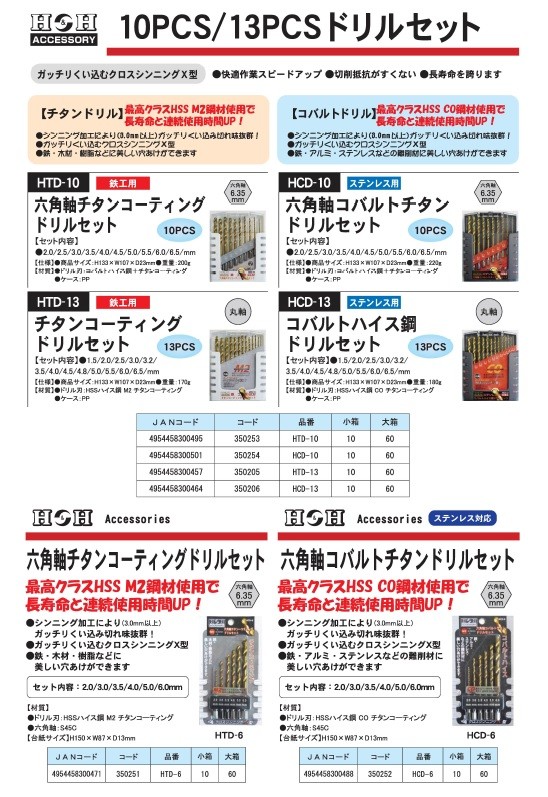 【商品名】(業務用10セット) H&H 六角軸コバルトドリルセット/先端工具 【6個入り×10セット】 ステンレス対応 HCD-6 〔DIY用品/大工道具〕