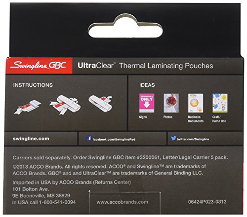 UltraClear thermal laminating pouches provide clean and crisp lamination for professional looking results. Brilliant clarity shows off the details in the text and color images of any document that is laminated. Lamination protects and preserves documents for the long term and enhances their look for display purposes. These glossy finish pouches are sized to laminate government ID cards and 5 mil, compatible with most laminating machines. 100 pouches per pack.Feature