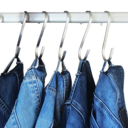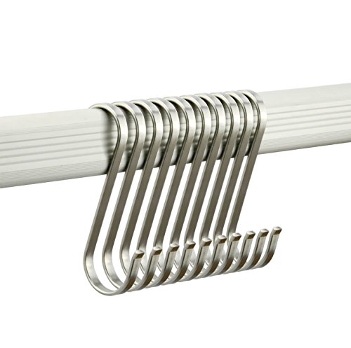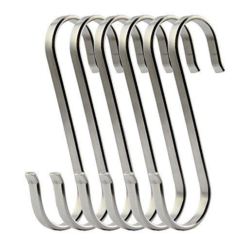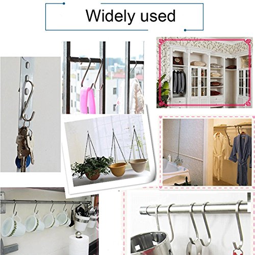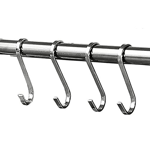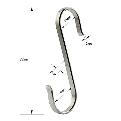 - Design:The stylish, sleek stainless steel design complements any kitchen, workshop, or outdoor area. Uniform thickness and openings fit most of the hanging rods.Buckle design, you never have to worry about the risk of a hook falling.And don't worry about spending a ton of money to get the polished, organized look you desire because these sturdy S hooks are affordable and made to last.