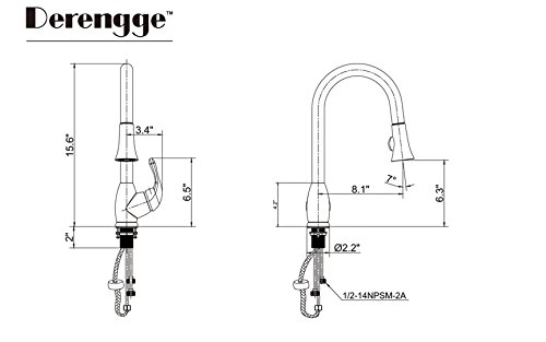 Derengge F-058-SS 1 Hole Brass Contemporary Stainless Steel Single Handle Pull-Down Kitchen Faucet,cUPC NSF AB1953 Lead Free Brushed Nickel