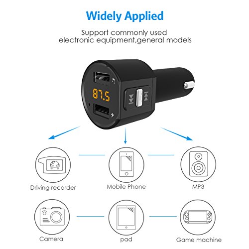 - Then the device enters into Bluetooth pairing mode, LED displays BT & FM Frequency. Turn your radio to an unused FM frequency, then match this device to the same frequency.