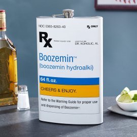 -. Binding : Kitchen -. Brand : Wild Eye Designs -. Color : White -. EAN : 0665613205602 -. Feature : Holds 64 ounces (1/2 gallon) of your favorite beverage. / The perfect gift for just about everyone! / Features food grade stainless steel body with a vinyl wrapped printed RX precription label for "Boozemin" from "Dr. Al Kolohic" around the body, complete with advice and warnings on the back. -. Label : Wild Eye Designs -. Manufacturer : Wild Eye Designs -. PackageQuantity : 1 -. ProductGroup : Kitchen -. ProductTypeName : KITCHEN -. Publisher : Wild Eye Designs -. Studio : Wild Eye Designs -. Title : Prescription RX Boozemin XL - 64 oz. Stainless Steel Drinking Flask -. UPC : 665613205602