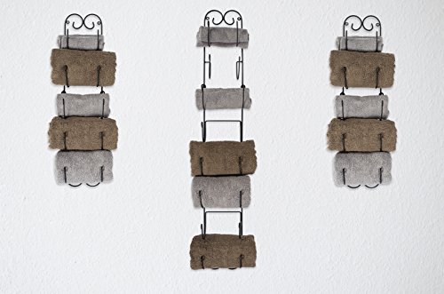 Multi purpose rack can be used for holding 6 bottles of wine or champagne, or for holding 8 rolled towels or other items