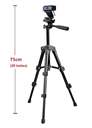 -. Feature : Tripod Max Height: 65cm; With Webcam Tripod Height: 75cm (29 inches); / Fit for Logitech Webcam C925e C922x C922 C930e C930 C920 C615, Logitech Brio 4K; / Webcam Tripod with 1/4 inch standard international screw; / Webcam Tripod with 3 section extendable legs; / 1 x Webcam Tripod, 1x Black Fabric Carry bag;