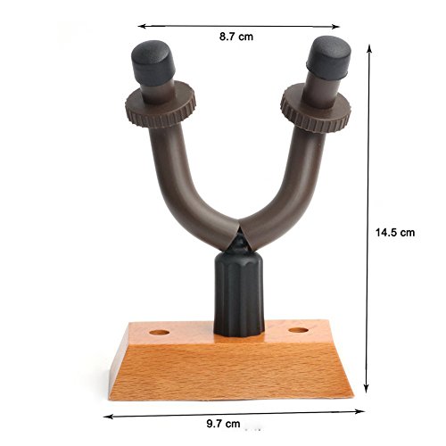 - Two mounting screws and two drywall anchors are included for fast and hassle-free installation. - Affordable, durable, and convenient space-saving tool to keep your valued investment well protected, neatly organized. - Featuring a 2-part design, a stainless steel yoke coated with specially formulated padding, and a real hardwood wall mounting base. - Made of real hardwood, this is designed for a variety of string instruments such as acoustic guitars, bass, violins, mandolins, ukeleles, and more.