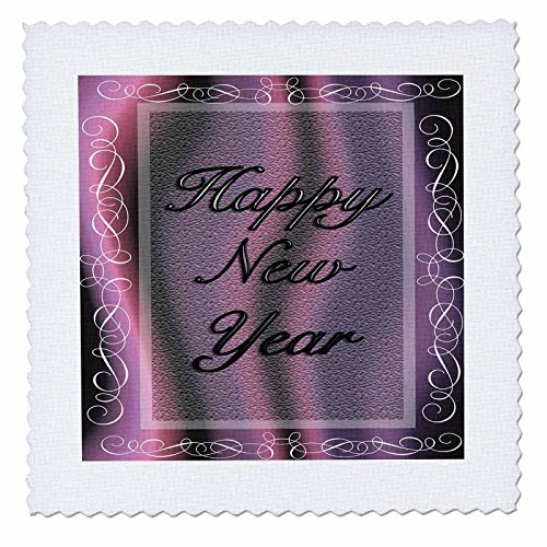 3dRose qs_113927_4 Elegant Lavender Textured Look with White Swirls Happy New Year-Quilt Square, 12 by 12-Inch