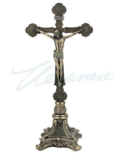 Standing Crucifix on Baroque Style Base Sculpture 13" Tall