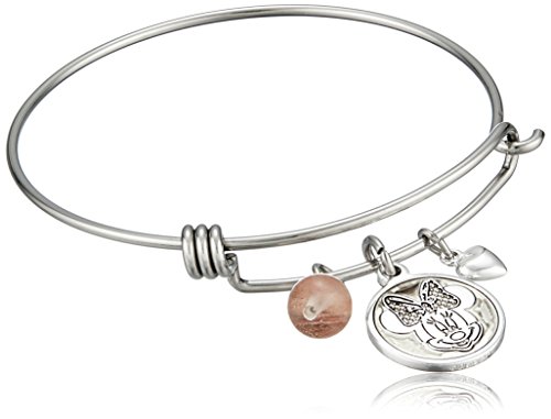 -. Title : Disney Stainless Steel Catch Bangle with Silver Plated Minnie Mouse "Love and Kisses", and Cherry Quartz Bead Charm Bangle Bracelet