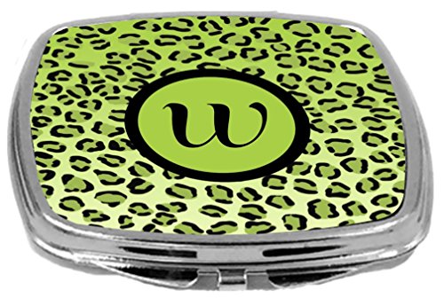 Rikki Knight Compact Mirror, Letter w Initial Lime Green Leopard Print