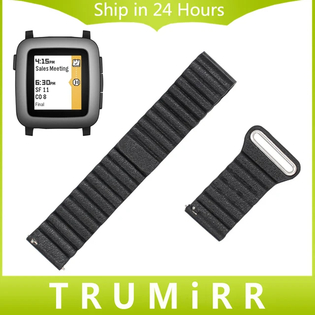 | [해외]22 미리메터 정품 가죽 손목 자기 버클 스트랩 조약돌 시간/스틸 시계 밴드 빠른 릴리스 벨트 팔찌 블랙 브라운 |