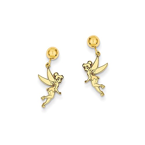 Solid 14k Yellow Gold Disney Tinker Bell Dangle Post Earrings (8mm x 17mm)