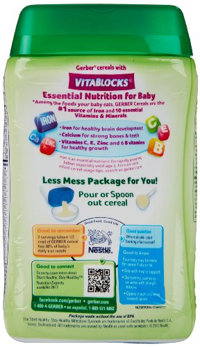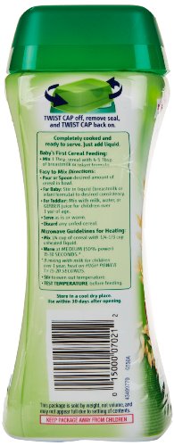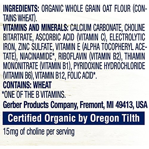 Gerber Organic Oatmeal Cereal is baby's number one food source for Iron,* available in an easy-to-use, less-mess package that's easy to pour, scoop, open, and close. This completely cooked cereal is ready to serve - just add liquid. It is certified Organic by Oregon Tilth and provides baby with Iron, Zinc, Calcium, Vitamin C, Vitamin E, and six B Vitamins for healthy growth and development.