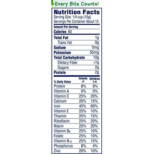 - Two servings (about ½ cup) offer 90% of your baby's daily Iron needs