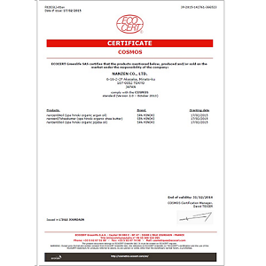本商品は、世界基準の有機認証機関であるECOCERT GREENLIFE(エコサート グリーンライフ)によりECOCERT Standard(エコサート基準)及びCOSMOS Standard(コスモス基準)のオーガニック認定を受けている商品です。