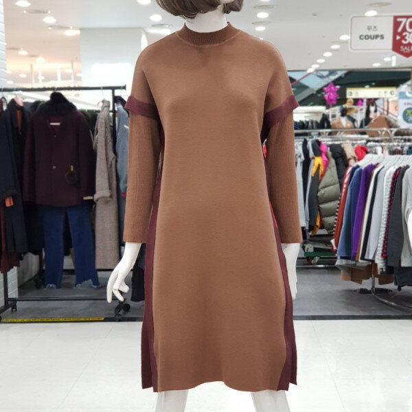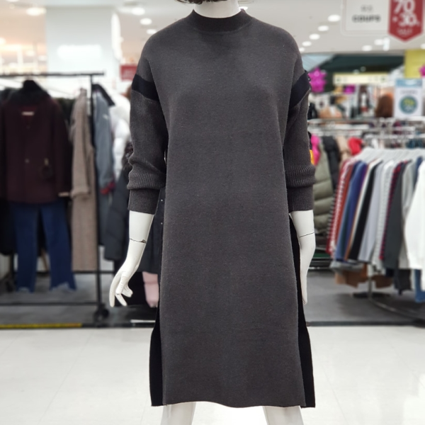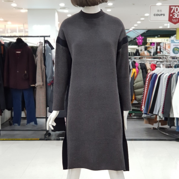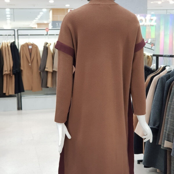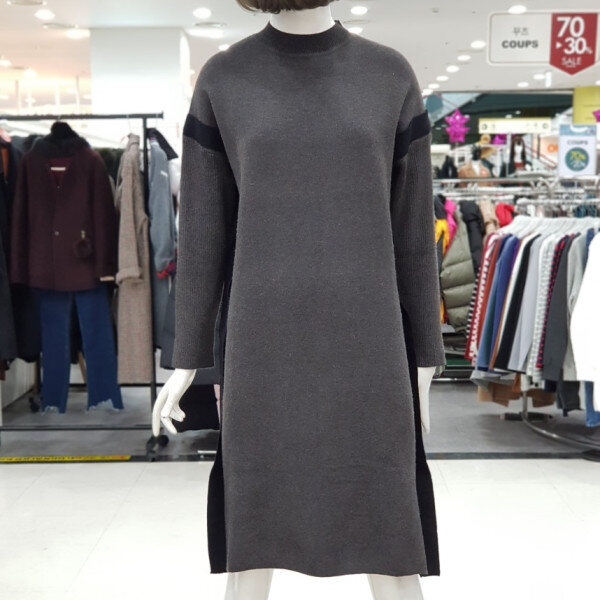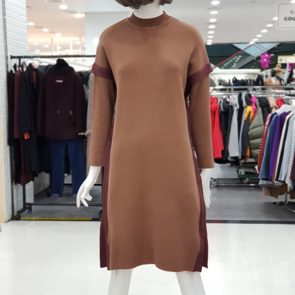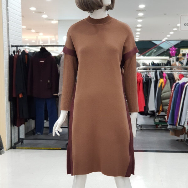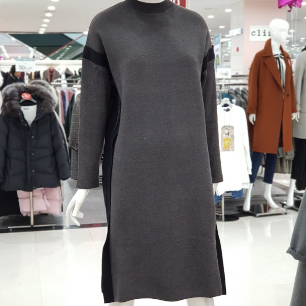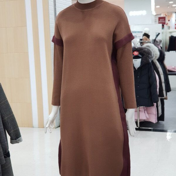 하이넥 소매 배색 원피스입니다.점퍼나 베스트안에 코디하실수 있는 아이템입니다.:>