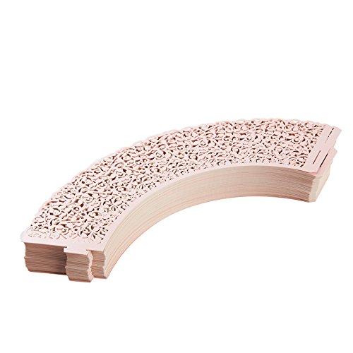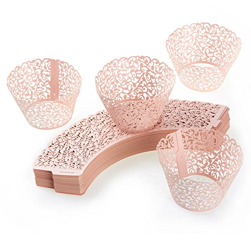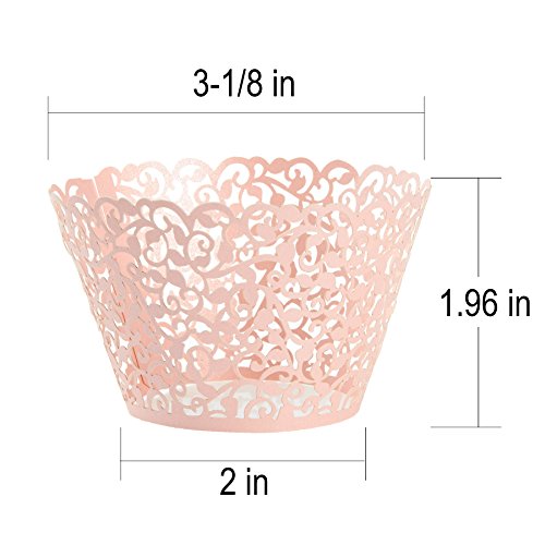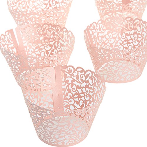 100-Piece Decorative Laser Cut Cupcake Liners for Weddings, Birthdays, Christmas, Lace Cupcake Wrappers, Pink