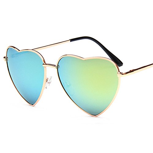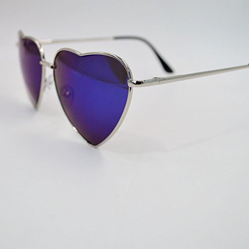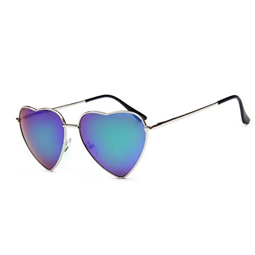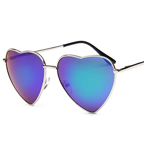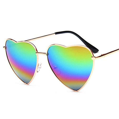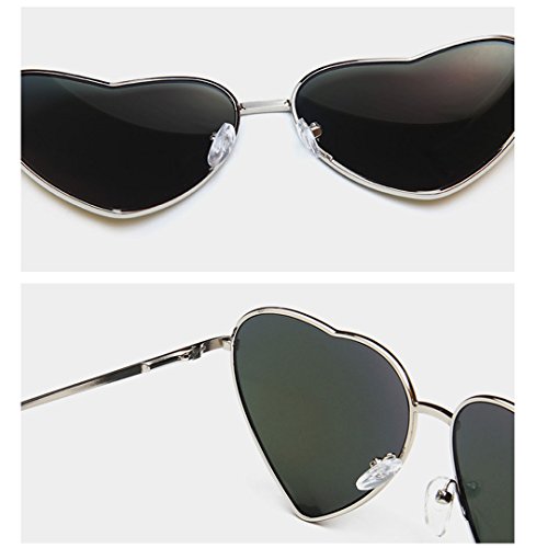 High quality material makes it durable and lasting. Design features: Distinct heart silhouette frame shape. Thin metal frame and color coated lens offer a very chic look to this season's collection. Color: we have four different lens colors for you to choose: silver frame with rainbow lens, silver frame with red lens, silver frame with blue lens, silver frame with green lens. very cute and fashion sunglasses for trip and vacation.