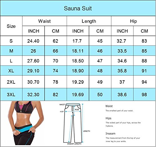S: Waist 25.2"/ 64CM Length 33.9"/86CM Hip 33.9"/86CM M: Waist 26.4"/ 67CM Length 34.6"/88CM Hip 35"/89CM L:Waist 27.6"/ 70CM Length 35.4"/90CM Hip 36.2"/92CM XL:Waist 28.7"/ 73CM Length 36.2"/92CM Hip 38.2"/97CM XXLWaist 29.9"/ 76CM Length 37"/94CM Hip 39.8"/101CM XXXL:Waist 31.5"/ 80CM Length 37.8"/96CM Hip 41.7"/106CM Neoprenecan prevent heat getting away, heat up your body, accelerate the blood circulation and make you sweat like crazy. Weight loss anywhere and anytime, calories burn and toxins go away when you enjoy the sweat flowing down. Just wear it one hour a day and move on. These leggings help squeeze the body fat and shape a slim torso. 0 |